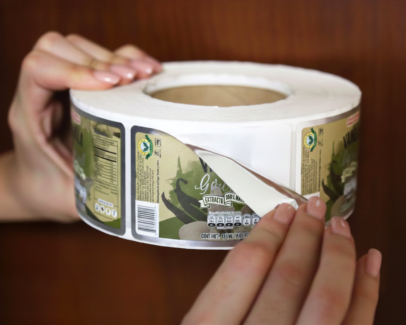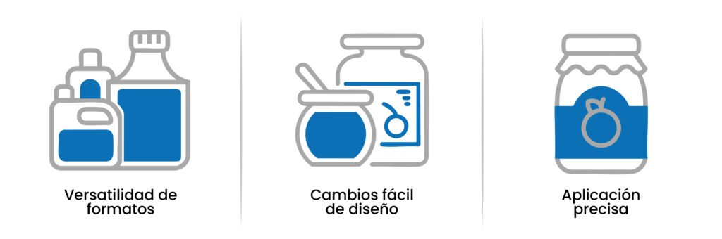 Se aplica directamente sobre el envase y es ideal para productos que requieren información clara y precisa.